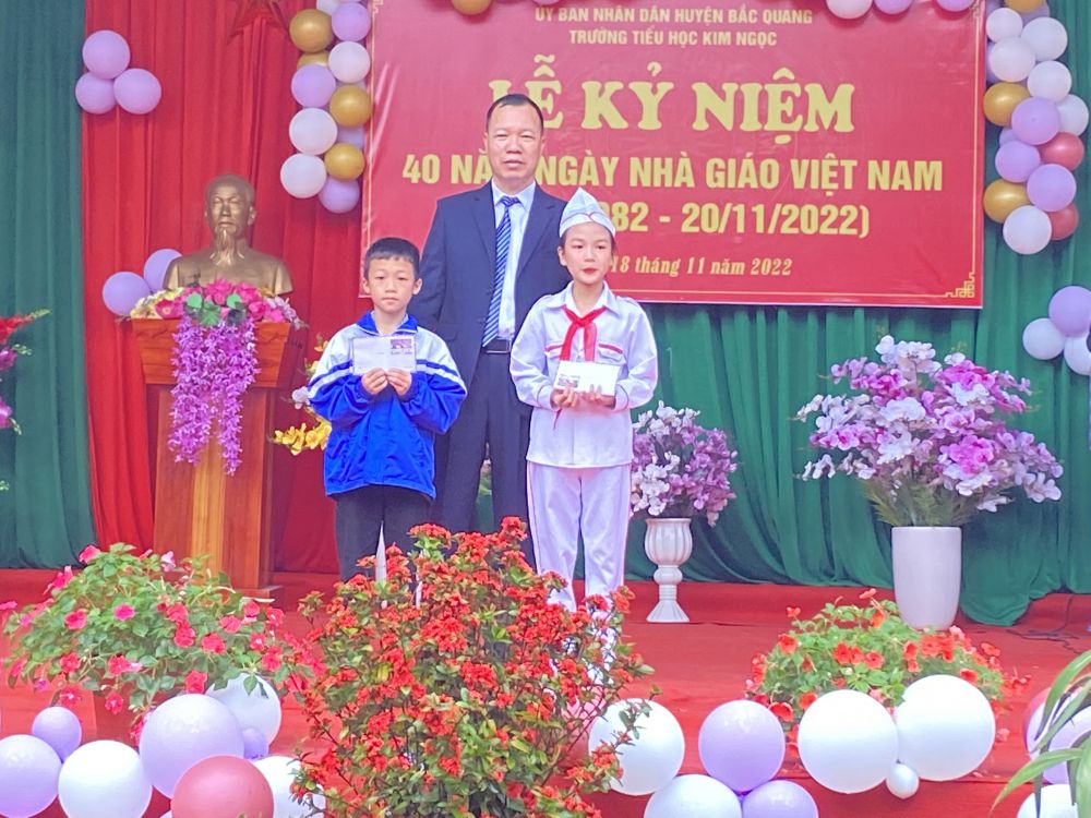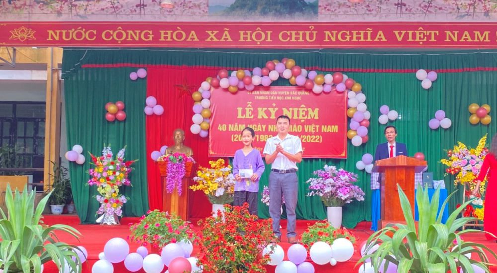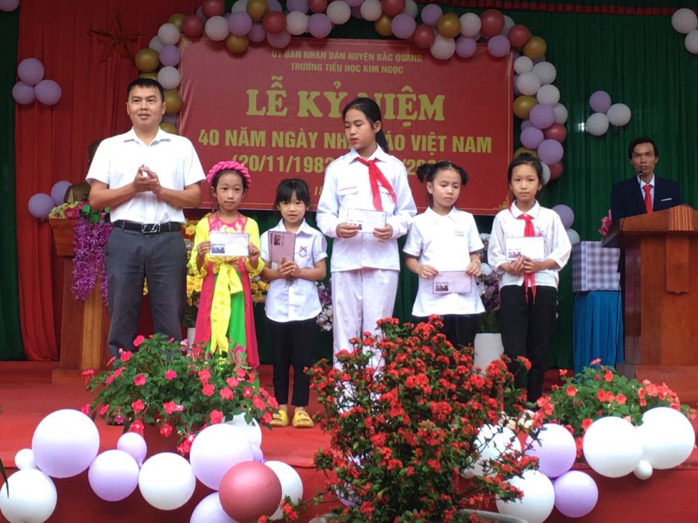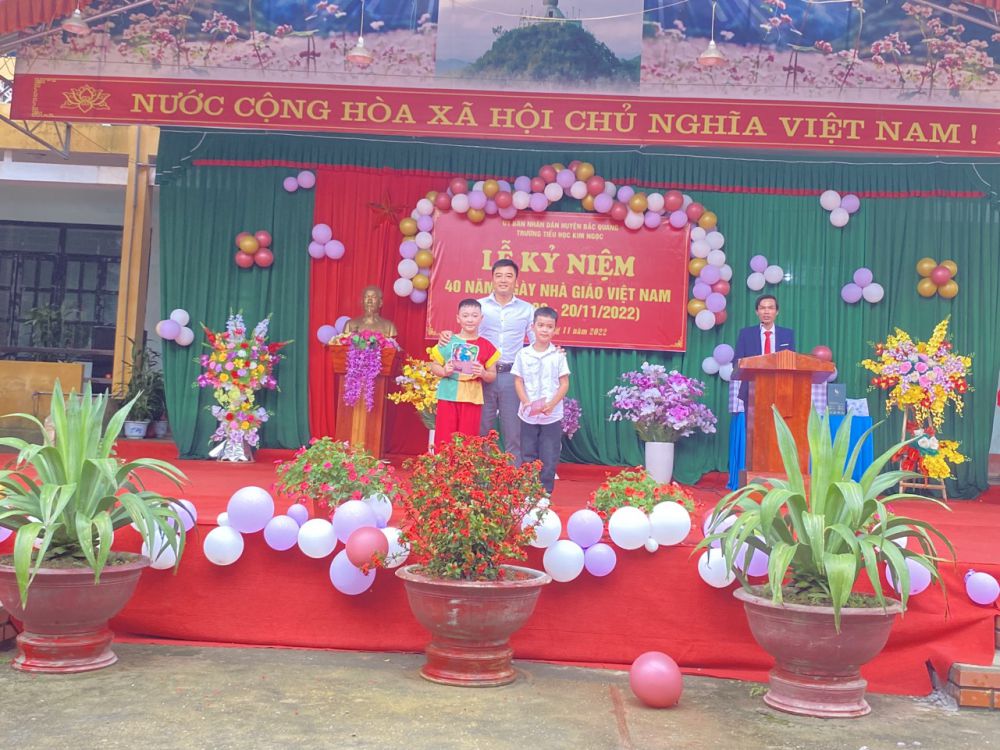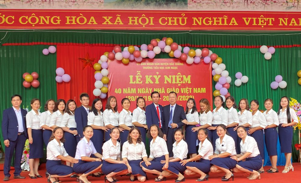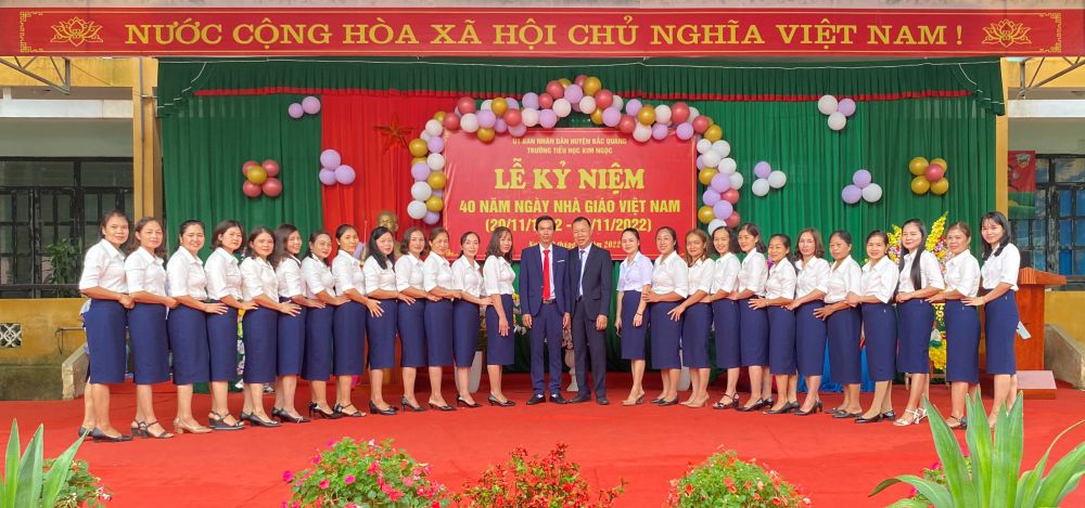 Sáng ngày 18/11/2022, trường TH Kim Ngọc long trọng tổ chức lễ kỷ niệm 40 năm ngày Nhà giáo Việt Nam (20/11/1982-20/11/2022). Tới dự buổi lễ có lãnh đạo Đảng ủy, HĐND, UBND, MTTQ xã Kim Ngọc; Ban đại diện Cha mẹ học sinh; Đại diện chi nhánh Viettel Bắc Quang, các Công ty doanh nghiệp đóng trên địa bàn xã , BQL các thôn bản trong xã, các đ/c cực giáo chức...